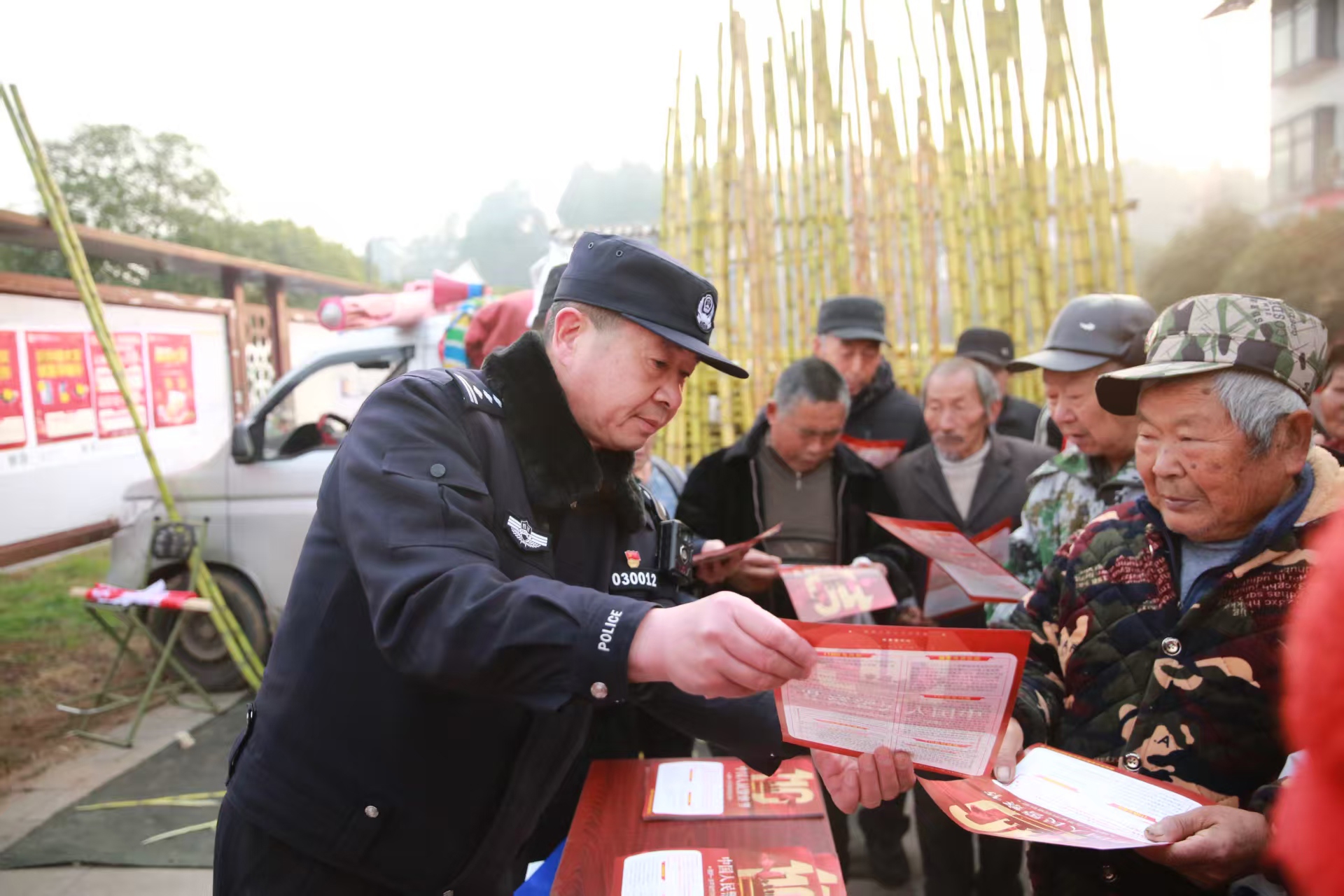 同日,"民呼我应。110在行动"主题宣传活动在七曲村举行,民警向群众发放防范诈骗,禁毒等宣传资料,详细讲解110正确使用方式,并解答安全关切。