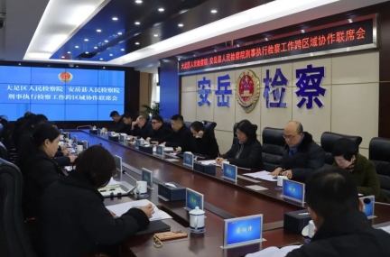 1月9日,据安岳县人民检察院通报,该院与重庆市大足区人民检察院就刑事执行检察工作中加强跨区域协作召开联席会。大足区人民检察院党组书记、检察长陈飞宇,安岳县人民检察院党组书记、检察长胡也出席会议并签署协作纪要。