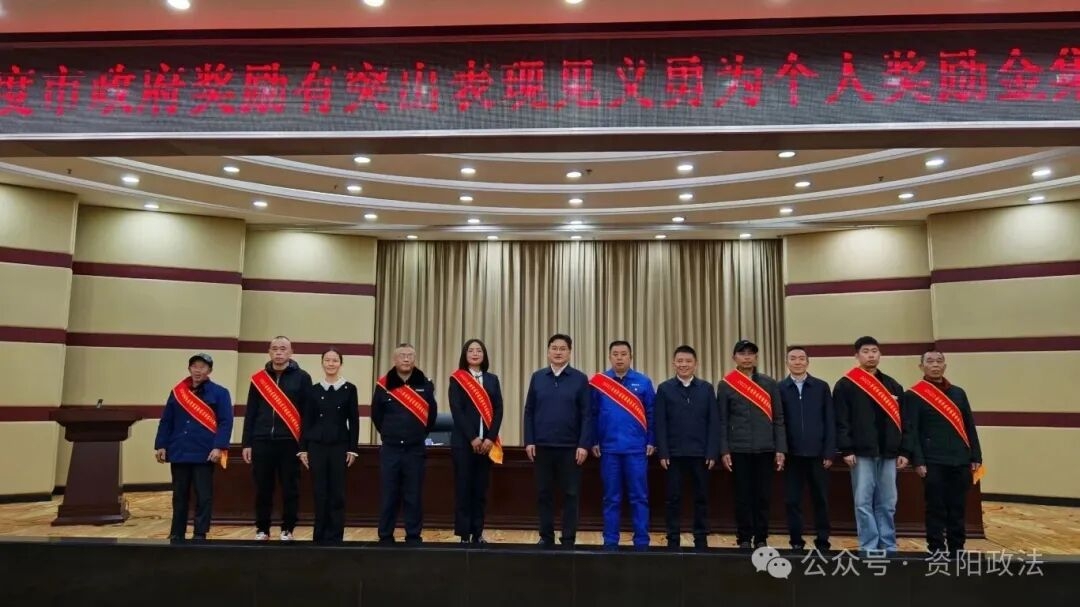 1月14日,资阳市举行了2025年度市政府奖励有突出表现见义勇为个人奖励金集中发放仪式,为8名见义勇为人员颁发见义勇为奖金。市委副书记、政法委书记杜德清出席并讲话。
