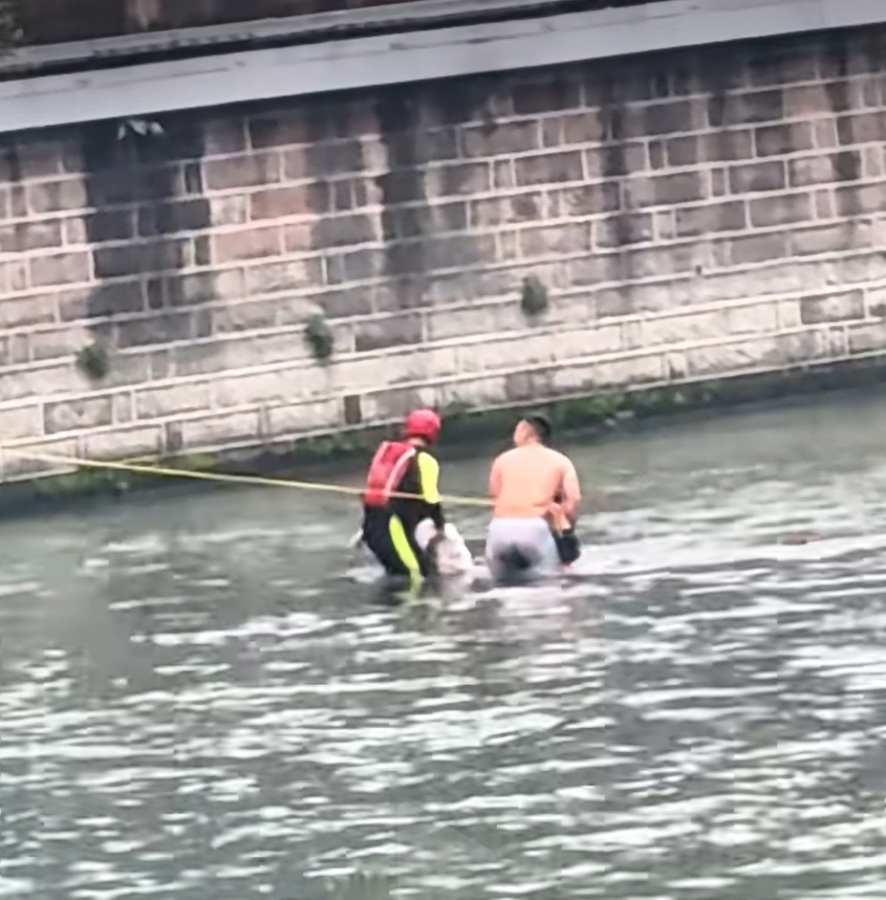 张浩楠抓过救生圈,迅速奔向下游一处低矮的小码头,脱掉衣服,纵身跃入江中。“第一感觉就是冷,水流猛得让人站不住,水底还全是尖石。”他回忆道。顾不得这些,他奋力游向女子,用救生圈将她护住,又立即转身接应已意识模糊的付超。“他求生意志很强,还能抓住我。”张浩楠一手用救生圈圈住女子,一手紧紧搂住付超,在急流中艰难地保持平衡。很快,一名消防员也游来支援,张浩楠将女子移交后,抓住岸上抛来的绳索,半扶半抱地拖着付超向岸边挪去。