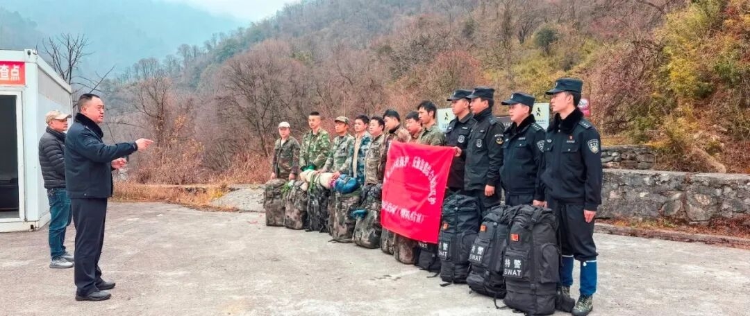 出发前,喇叭河派出所副所长苟存博检查了背包——重约20公斤的睡袋、干粮、工具,东西齐全后,他深吸一口气,走向等待的队友……12月8日,天全县公安局森林警察大队、反恐特警大队、喇叭河派出所民辅警在县局集结。