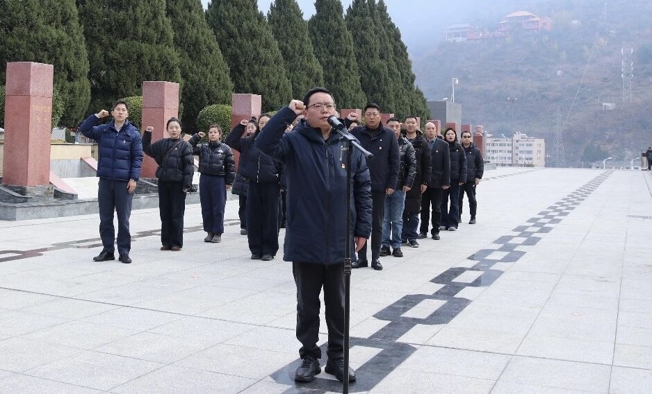 巍巍青山下,红军飞夺泸定桥纪念碑庄严矗立。全体党员整齐肃立,向长眠于此的革命先烈敬献花篮,深切缅怀那段血与火铸就的峥嵘岁月。在领誓人的带领下,全体党员干部面向鲜红党旗,铿锵有力的誓言再次响起,字字千钧、声声入心,传递出政法干部对党忠诚、信念如磐的政治本色。