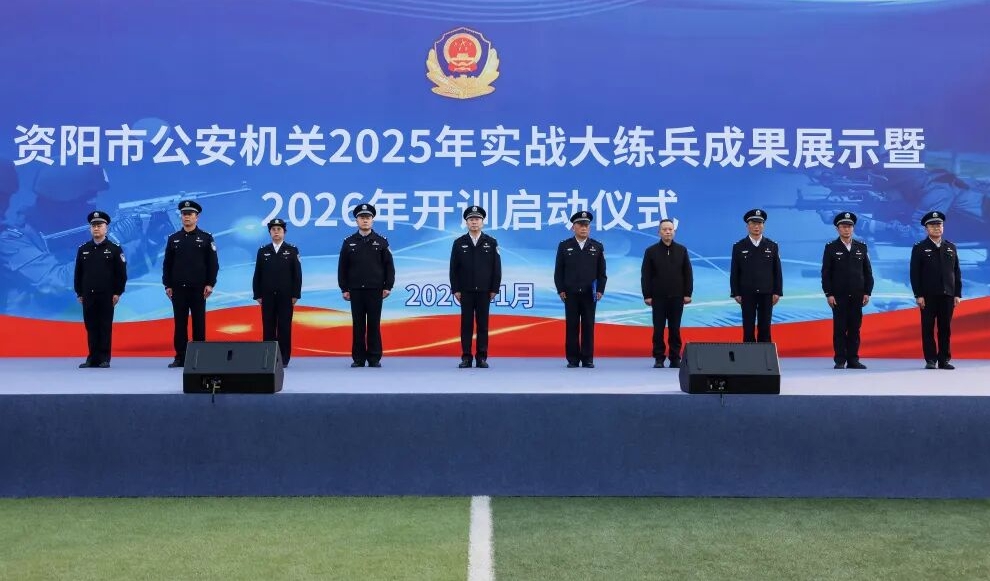 2026年1月16日下午,资阳市公安局隆重举行2025年实战大练兵成果展示暨2026年开训启动仪式。仪式全面回顾了去年全市公安机关以练促战、以战验练的奋斗历程。今年,面对复杂形势与严峻挑战,资阳公安全体民辅警将始终秉持“高站位、大格局、新担当、新作为”理念,在实战实训中淬炼本领,在重大任务中彰显担当,全力维护社会安全稳定和人民幸福安宁。