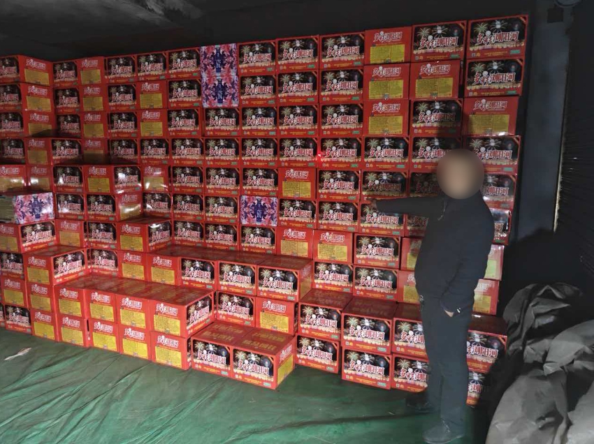 与此同时,民警根据摸排掌握的线索,成功打掉一处隐藏在普通民房内的非法储存、售卖烟花爆竹窝点。经查,邹某在未办理任何合法许可手续的情况下,私自囤积1000余件烟花爆竹用于销售,存在极大的安全隐患。目前,该案正在进一步侦办中。