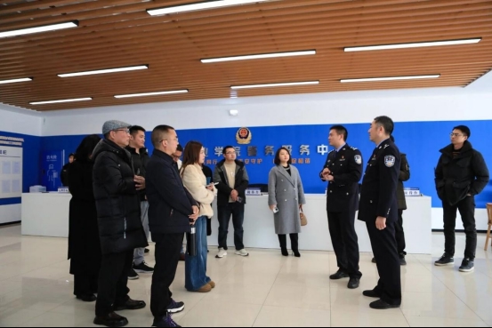活动伊始,媒体代表团先后走进眉山城市职业技术学院参观校园警务、秦家派出所了解反诈工作。在高校警务中心,富牛派出所负责人详细介绍了校园安全防控、学生服务保障等特色举措,生动展现了东坡公安护航青春校园的责任担当;在秦家派出所,大家沉浸式感受 “两年无诈” 的治理成效,翻阅反诈宣传台账、观摩特色展示区域,对派出所创新警民联动模式、精准开展反诈宣传的做法频频点赞,现场交流氛围热烈。