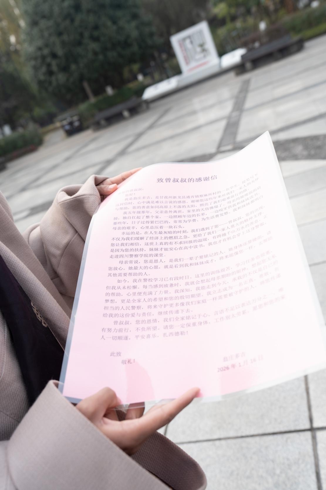 随后的日子里,曾本金每月按时给翁庄多吉转去五百元生活费,并承担其部分学习费用,直至他四年后毕业。同时,他还经常通过驻村工作队询问多吉的学习近况,嘱咐他保重身体。翁庄多吉的母亲说:“曾警官每次打电话来,都会问到多吉的学习。我们一家都记着这份情。”
