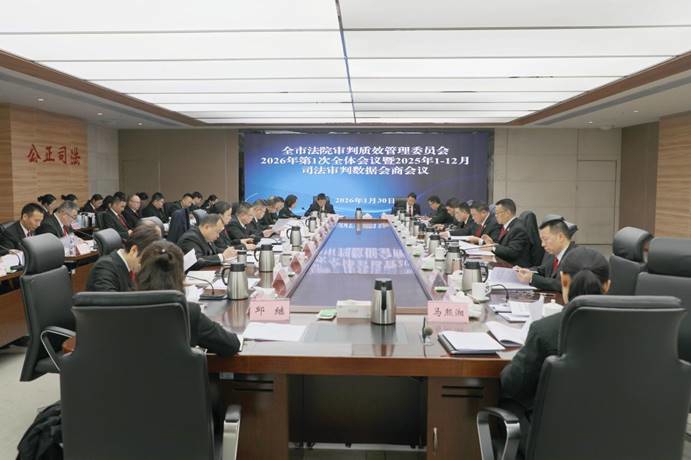 1月30日,眉山法院审判质效管理委员会2026年第1次全体会议暨2025年1-12月司法审判数据会商会议召开。眉山中院党组书记、院长、审管委主任付宝主持并讲话。