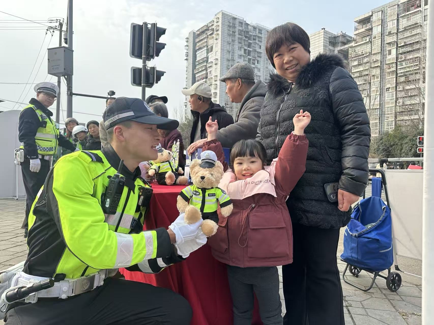 活动中,交警们一边发宣传册,一边用地道的客家话和乡亲们拉家常,把枯燥的交规变成了好懂好记的顺口溜和问答游戏。现场还专门准备了定制帆布袋和头盔、交警小熊等礼品,让赶集的大爷大妈、返乡的小年轻们在置办年货时,轻松把安全知识“揣进兜里”。