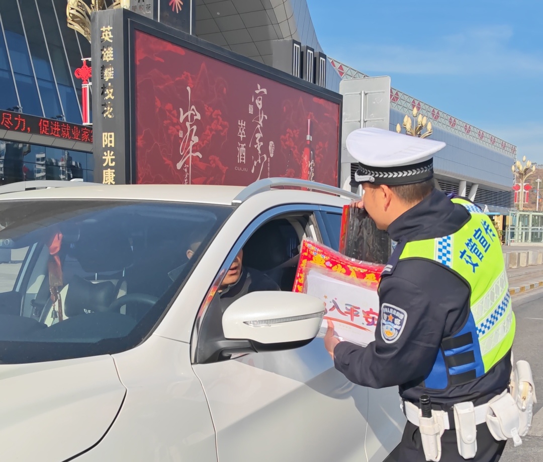钒钛园区:春运首日,交警贴福送平安传安全
