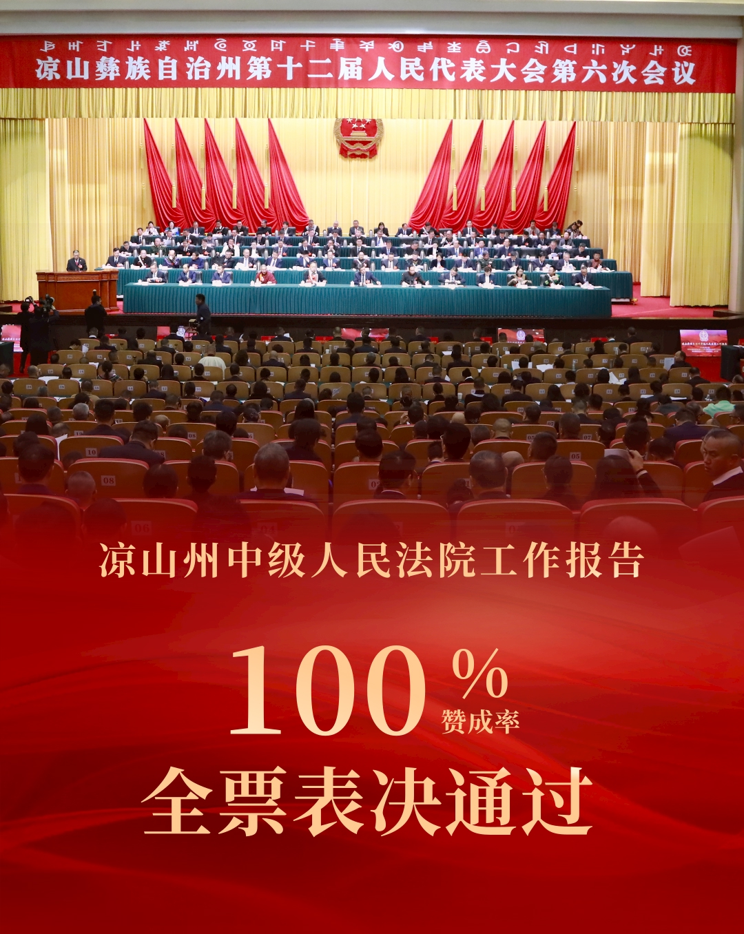 2月13日下午,凉山彝族自治州第十二届人民代表大会第六次会议圆满完成各项议程胜利闭幕。大会表决批准州中级人民法院、州人民检察院工作报告,法检两院报告均获全票通过。