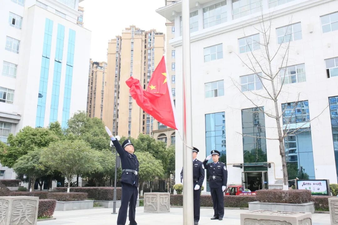全体干警身着制服,整齐列队、精神抖擞。随着雄壮激昂的国歌奏响,鲜艳的五星红旗冉冉升起,干警们全体肃立,向国旗行注目礼,表达对祖国的无限崇敬和热爱。