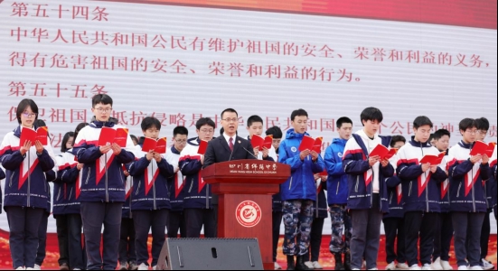 活动现场,宋骥带领学子们诵读《宪法》节选内容并赠送《宪法》读本。在铿锵有力的宪法条文中,同学们完成了从"少年"到"公民"的身份转变,深刻感受到作为成年公民的权利与义务。