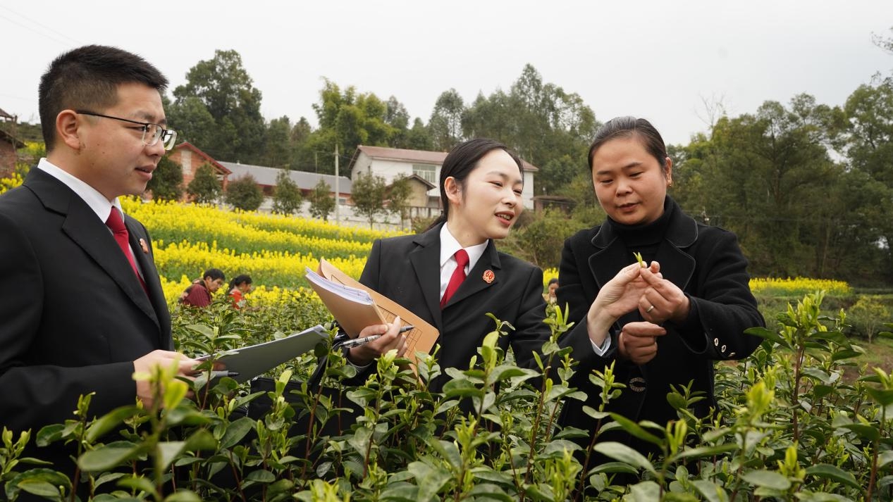 2025年3月17日,荣县法院法官到双古镇茶山向茶农、个体工商户开展“法护茶山,生态兴业”主题普法宣传活动