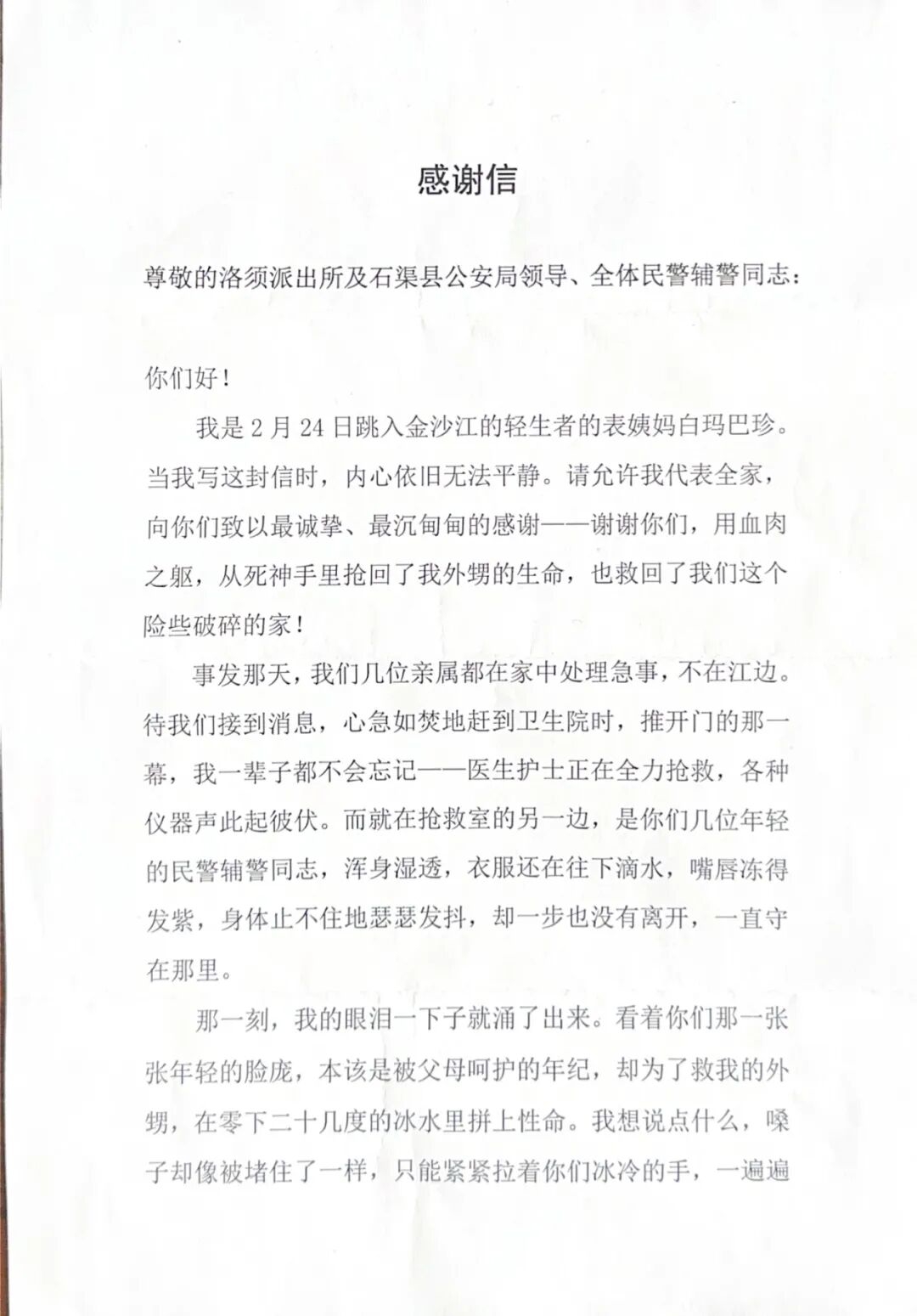 初春的川西高原,寒意依旧裹挟着这片“生命禁区”,石渠县洛须镇的金沙江畔,一场跨越生死的救援余热未散,一封饱含深情的致谢暖意涌动。