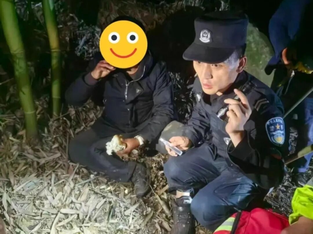 找到张某时,他因迷路摔倒、体力透支瘫坐原地,意识清醒但身体虚弱。