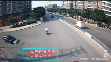 3月4日,据资阳市公安交管支队通报 1月9日14时29分,雷某某驾驶川G号牌小型普通客车,在资阳市雁江区雁北路右转时,因观察不细致、未礼让直行车辆,与刘某某驾驶的两轮电动自行车相撞,致刘某某受伤、两车受损。