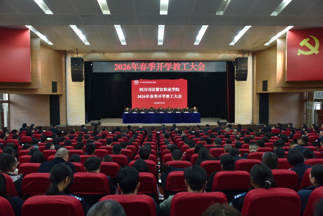 3月4日,四川司法警官职业学院召开2026年春季学期开学教工大会,传达学习2026年全省教育工作会议精神,通报表彰先进集体和先进个人,对做好学院2026年工作进行再部署、再动员。学院党委书记田亮出席会议并讲话,党委副书记、院长张大立主持会议。