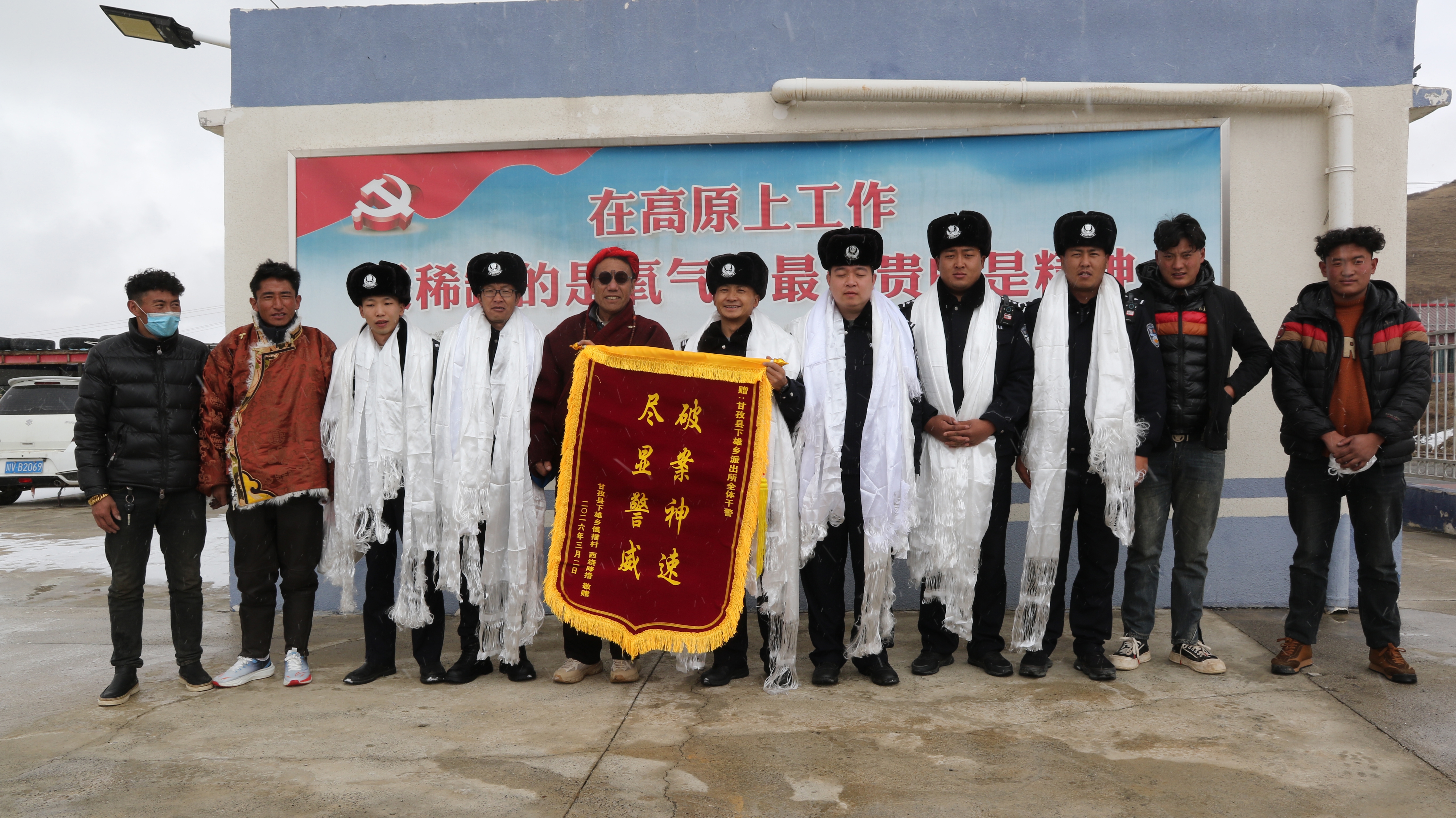 3月3日一大早,甘孜州甘孜县下雄乡俄措村牧民西绕降措带着家人,手捧洁白的哈达来到洛戈梁子警务站。一面鲜红的锦旗在风雪中熠熠生辉,上面“破案神速尽显警威”八个大字,映照着那个不眠之夜的温暖结局——就在几天前,他们刚刚领回了自家走失的八匹马,那是整个家庭的“命根子”。