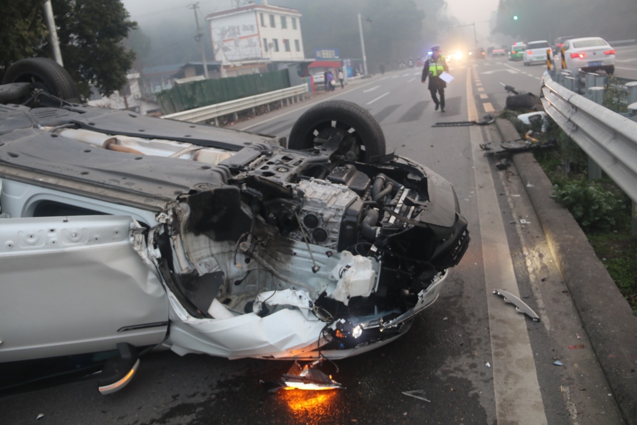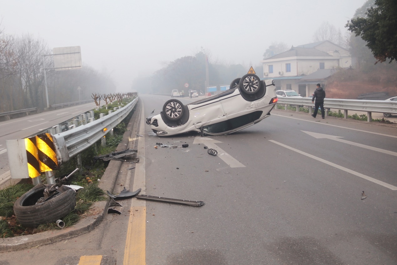 时间回溯到近两个月前。1月12日一大早,天色微亮,路上还带着深冬的寒意。8时许,在西环线与G351线交汇处,突然传来一阵尖锐的刹车声和剧烈的撞击声。吴小姐驾驶的车辆因操作不当发生单方事故,失控后发生倾覆,横躺在冰冷的道路中央。