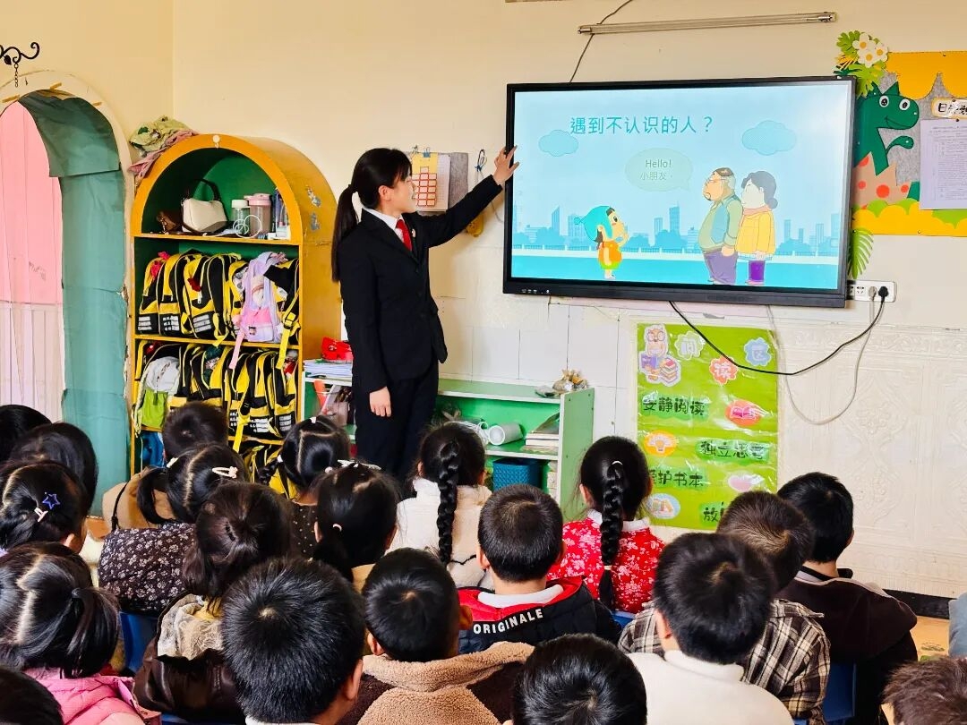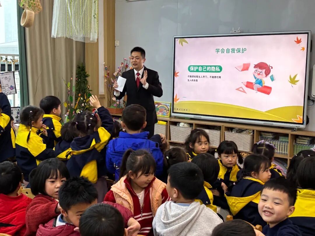 南溪区法院法治副校长走进小天使幼儿园开展防拐防骗主题普法活动。为更贴近幼儿认知特点,法治副校长结合案例,用通俗易懂、生动活泼的语言讲解拐骗、诱骗的常见手段,并通过情景互动、趣味问答、安全儿歌等形式教会孩子们实用的防拐防骗本领。