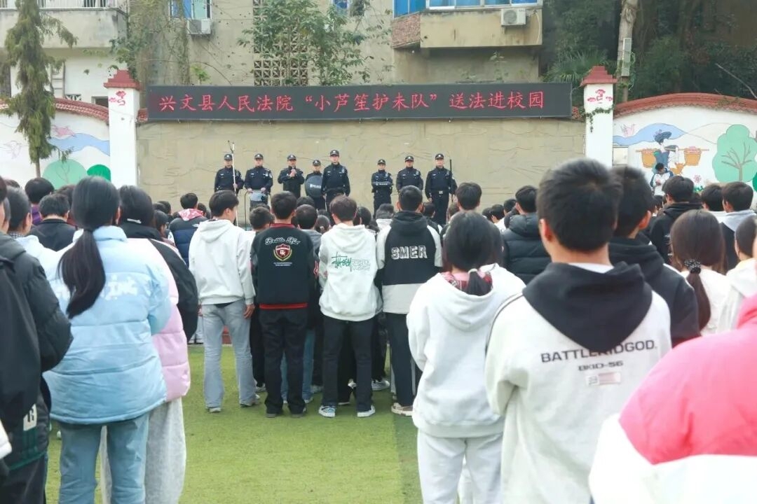 兴文县法院法治副校长走进辖区内中小学校,结合学生身心特点,通过本地真实案例剖析、情景互动模拟等方式,讲解了预防校园欺凌、预防未成年人犯罪、网络安全等重点内容,“小芦笙护未队”同步开展普法宣传活动,通过设立普法宣传点、发放宣传手册、一对一讲解等形式,向在校学生、教职工普及未成年人保护、校园安全、反诈骗、防性侵等法律知识。