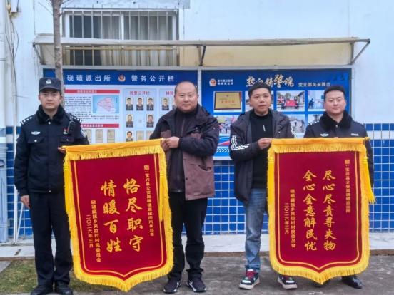 3月4日,夹拉村的村干部们捧着两面锦旗,再次来到了硗碛派出所。一面是 “恪尽职守 情暖百姓”;一面是“尽心尽责寻失物 全心全意解民忧”没有华丽的辞藻,却字字千钧。这两面锦旗,不仅是对民辅警辛苦付出的肯定,更是对一个群体默默守护的致敬。