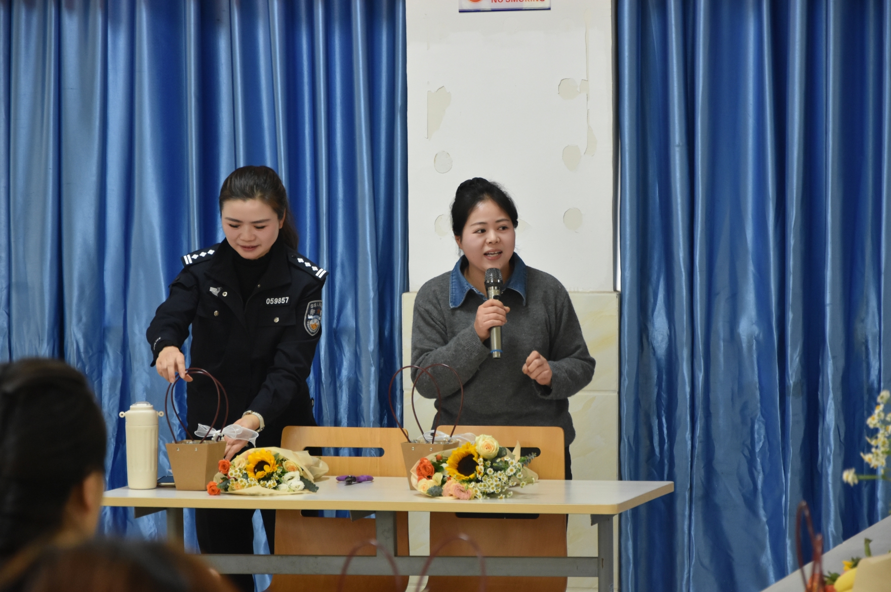 活动现场,花香四溢,笑语盈盈。专业花艺老师从花材选择、色彩搭配、造型设计等方面进行了细致讲解和示范。在花艺师的指导下,女警们充分发挥想象力和创造力,用心构思、精心修剪,将一朵朵普通花材,巧妙搭配成一件件错落有致、独具匠心的插花作品。
