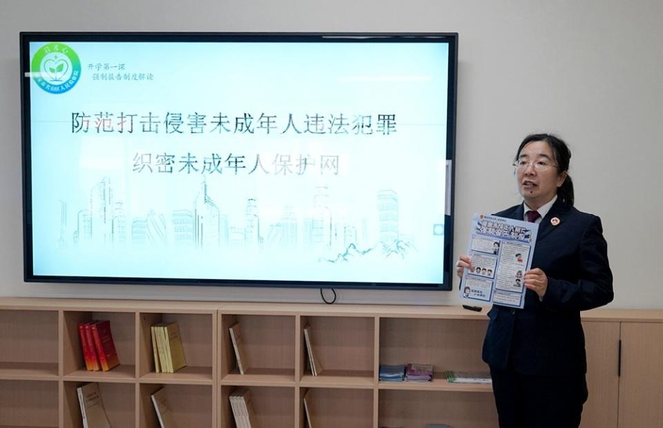 近日,雅安市名山区检察院“启茗心”办案团队在雅安市第九中学驻校检察室宣讲“开学第一课”。检察官围绕法律知识、典型案例、强制报告制度内容,为学生和老师送上新学期第一份“成长礼包”,帮助孩子们增强法治意识,守护健康成长。