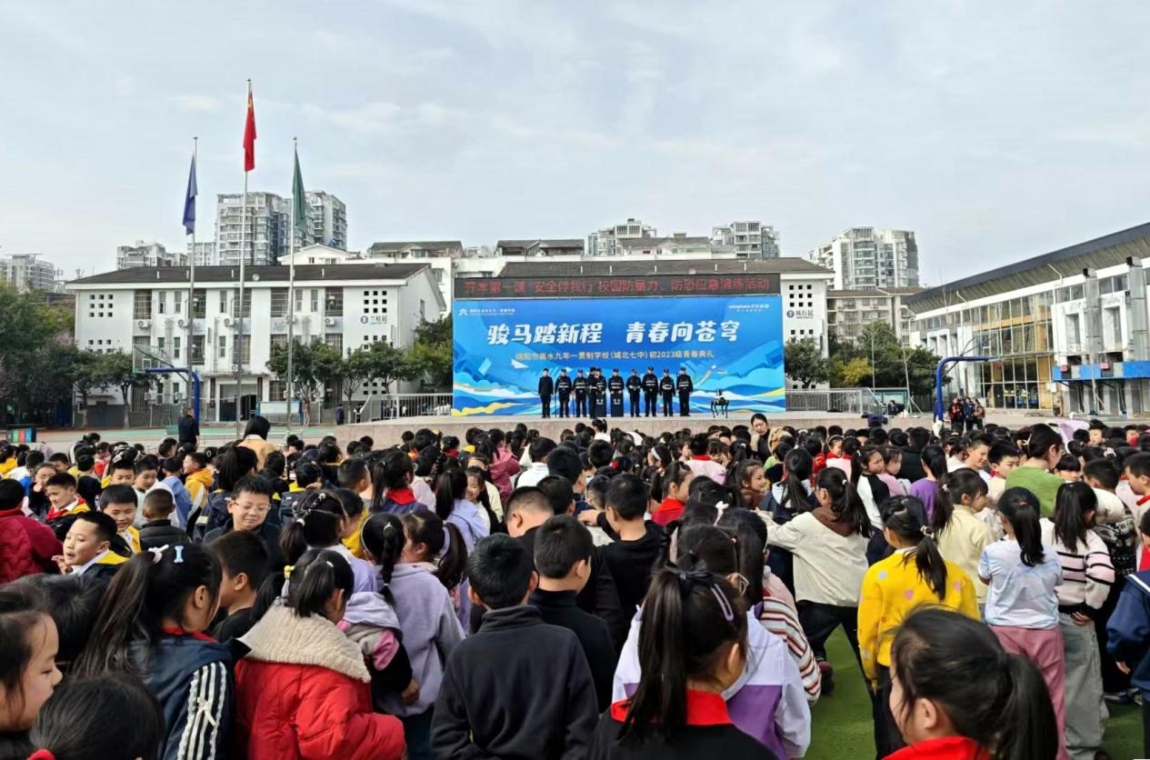为进一步增强校园师生面对突发恐怖事件的防范意识,提高应对恐怖袭击的应急处置能力,营造安全、和谐的校园环境,3月5日,绵阳市公安局反恐特警支队巡逻四大队组织特警走进辖区内的高水九年制一贯制学校,开展了一场别开生面的“安全伴我行”反恐防暴演练活动,为全校师生送上了一堂生动的安全教育实践课。
