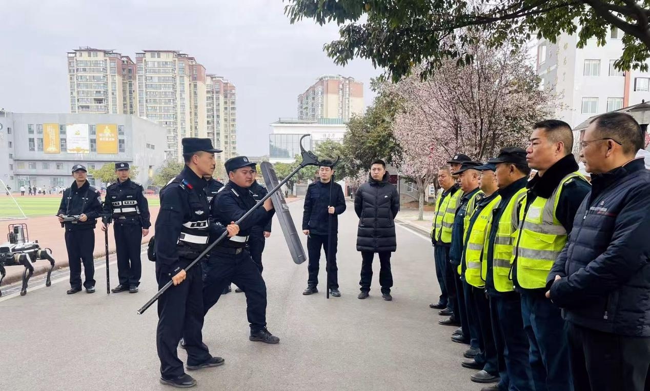 同时,队员们还现场示范了防暴器械的正确使用方法,邀请部分师生上台进行实操体验,让大家更加直观地了解和掌握这些器械的使用技巧。