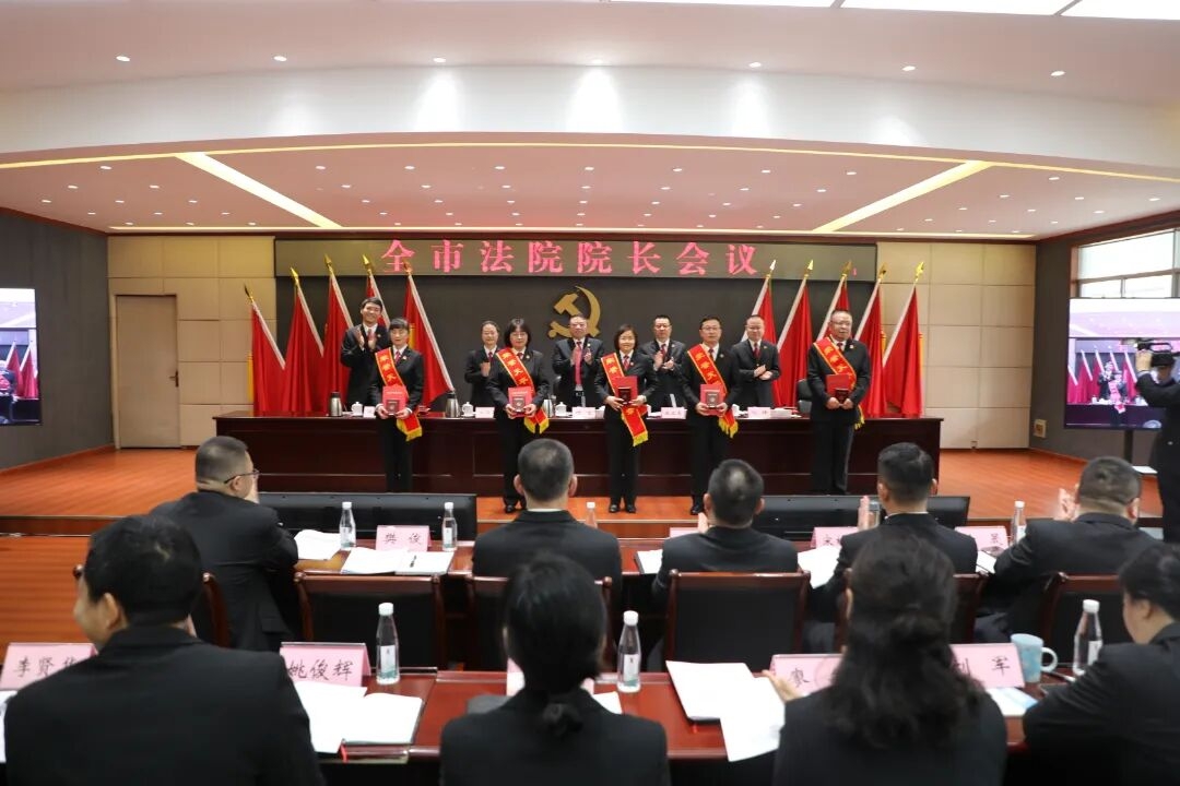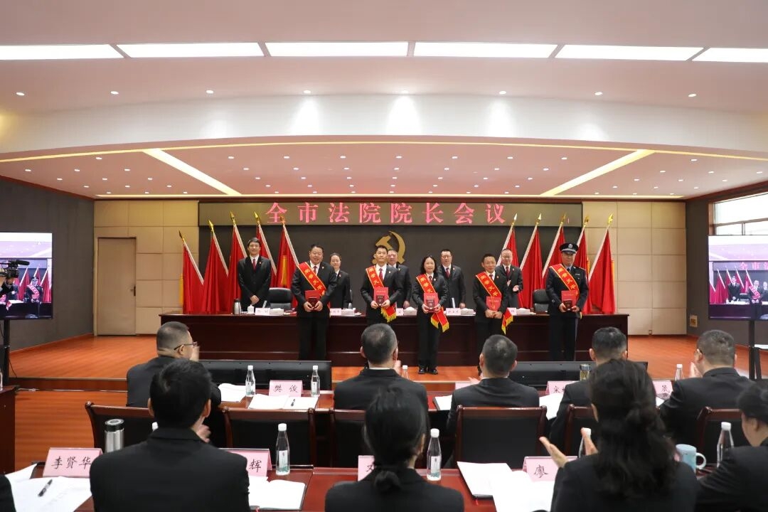 会议传达学习了中央政法工作会议、全国高级法院院长会议、省委政法工作会议、全省中级法院院长会议、市委政法工作会议精神;宣读了市委常委、政法委书记杨军批示;通报了全市法院2025年度工作成绩突出集体和个人,向工作满30年的干警颁发荣誉天平纪念章;东坡区法院就审判管理工作、洪雅县法院就综合工作发言。