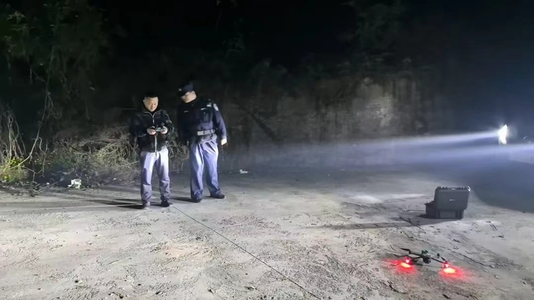 追踪犬“黑豹”以老人遗留衣物为嗅源,在乡间小道上低头嗅探、稳步追踪;搭载热成像设备的无人机腾空而起,掠过山林、沟渠、废弃房屋与偏僻田埂,对重点区域展开拉网式空中排查。