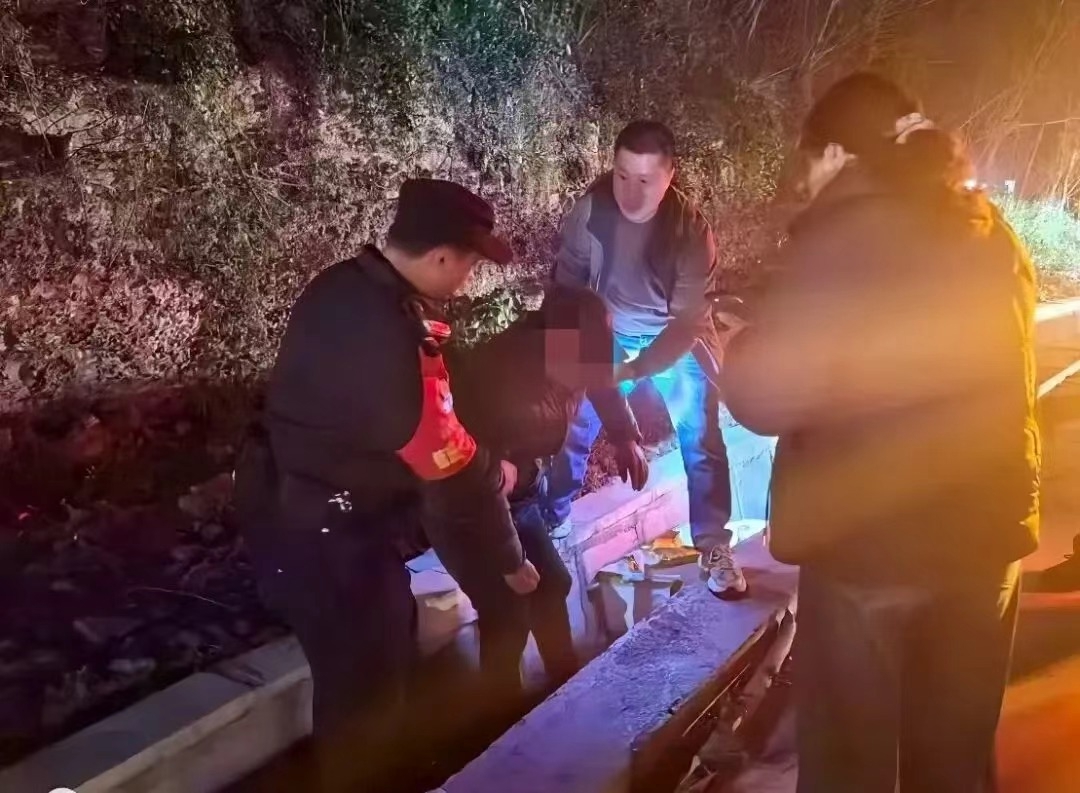 在沿乐路附近一处水沟旁,民警发现了蜷缩在地的走失老人。