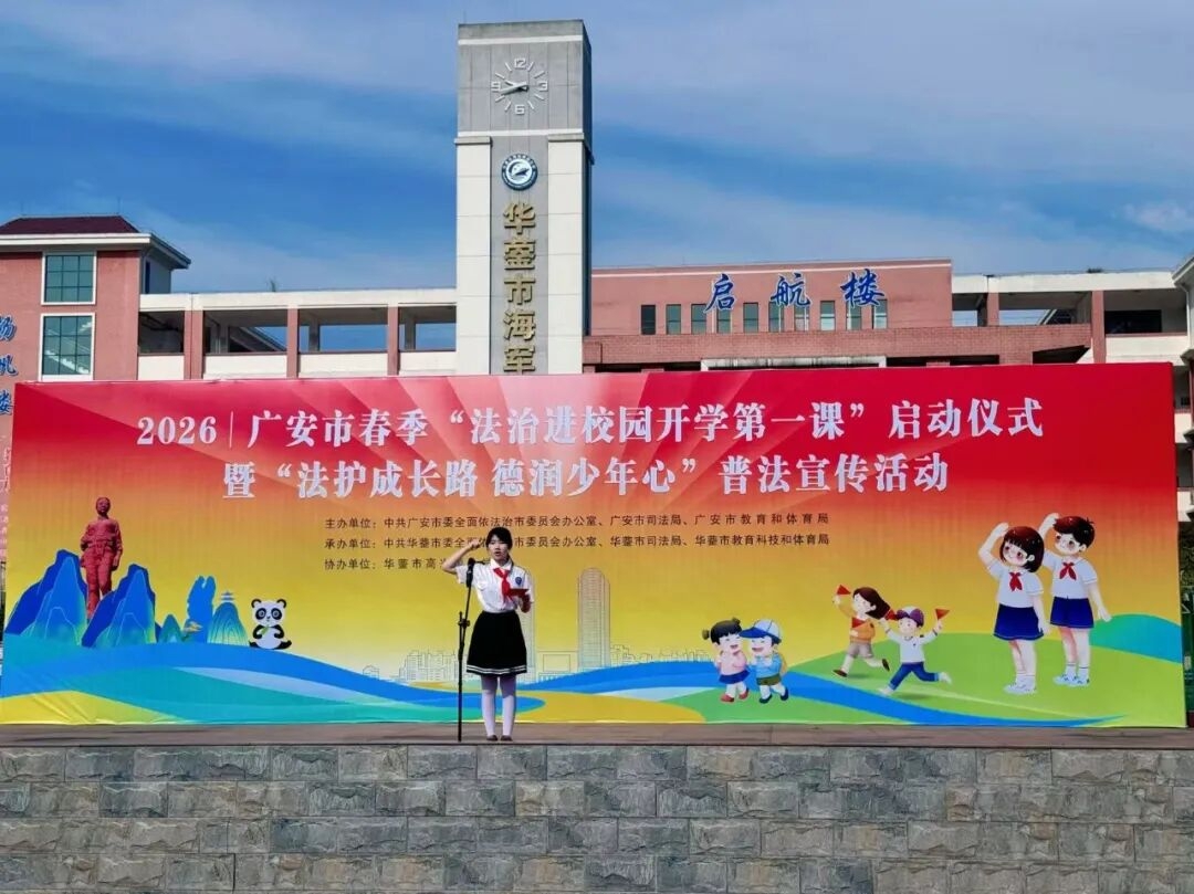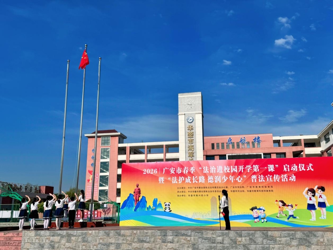 3月11日,以“法护成长路 德润少年心”为主题的广安市2026年春季“法治进校园·开学第一课”启动仪式暨普法宣传活动在华蓥市高兴镇小学举行。