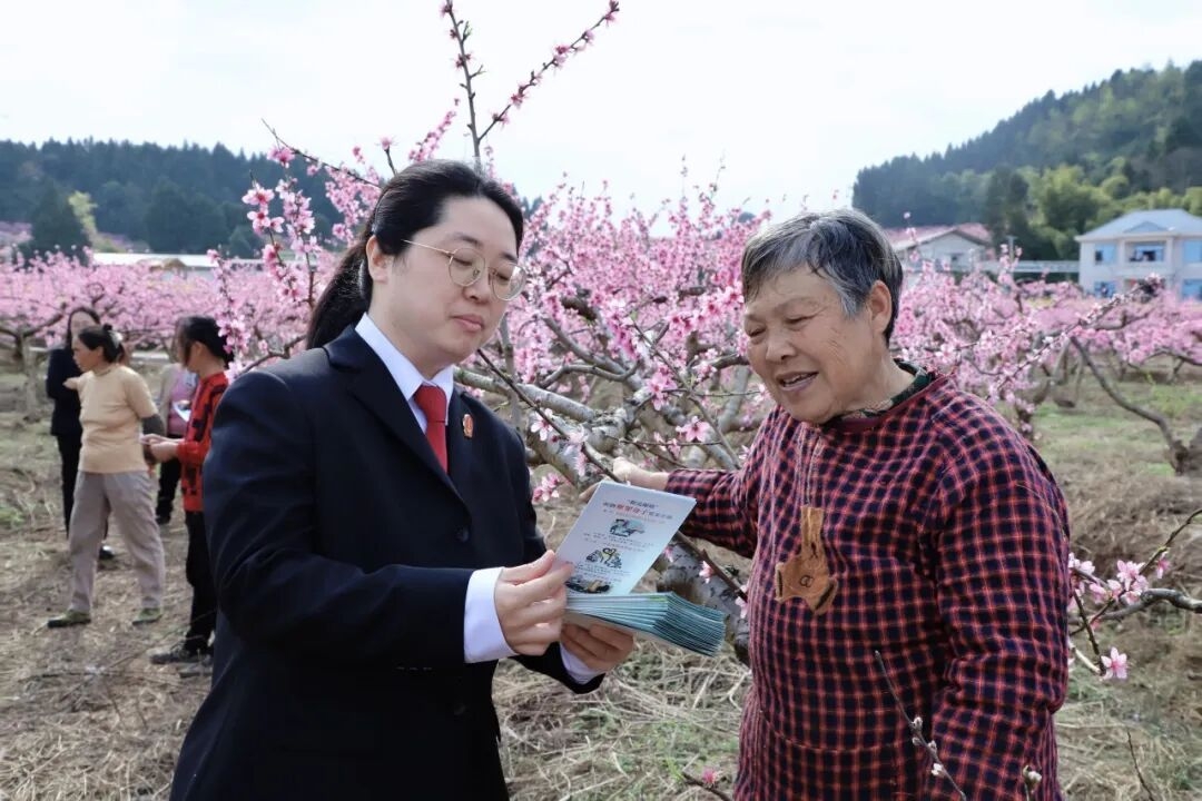 近日,安居法院三家法庭、横山法庭、拦江法庭携手保石镇政府,将法治课堂搬到桃花树下,把法治服务送到游客、桃农身边,用接地气的司法服务为桃花林添上一抹“法徽红”。