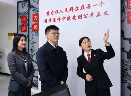 调研组还调研了乐至县南塔人民法庭,听取了南塔法庭关于创建“枫桥式人民法庭”的工作汇报,实地察看了“绿色桑都产业发展解纷中心”。曾学原副院长对南塔法庭相关工作给予肯定,并对下一步深化“枫桥式人民法庭”创建提出要求:一是深挖文化内涵,打造特色品牌。坚持元帅故里“青松精神”的文化内核,推动红色基因与法治精神深度融合,深耕“一庭一品”的专业化路径,持续提升法庭品牌的生命力与影响力。二是融入治理大局,提升司法效能。坚持“抓前端、治未病”,推动法庭工作与基层治理同向发力,健全与综治中心常态化对接机制,因地制宜开展商事调解工作,强化信息共享、矛盾联调,推动司法服务下沉,形成源头预防、前端化解工作合力。三是锚定创建目标,深化“枫桥”实践。深刻把握新时代“枫桥经验”内涵,一体推进便民诉讼、多元化解、普法宣传,以机制完善促规范,以方法创新提效能,全力实现“小事不出村、大事不出镇、矛盾不上交”。