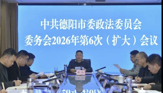 3月12日,德阳市委政法委召开委务会(扩大)会议,传达学习《习近平关于树立和践行正确政绩观论述摘编》、中央党的建设工作领导小组会议、省委、市委党建领导小组会议精神及相关文件精神,审议通过《中共德阳市委政法委员会开展树立和践行正确政绩观学习教育的工作方案》,部署动员开展树立和践行正确政绩观学习教育相关工作。德阳市委政法委书记廖凯主持会议并讲话。