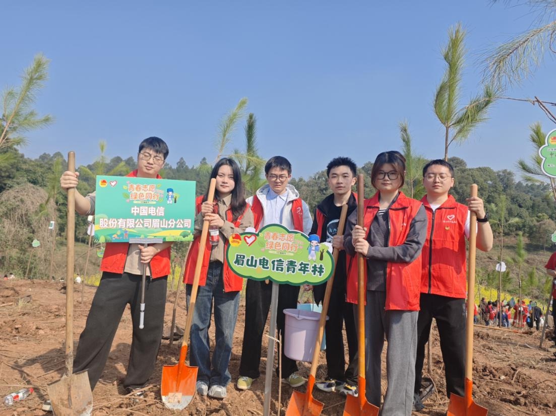 三月的眉山,风里带着泥土的芬芳,眉山市东坡区短松冈上,一群人正弯腰挥锹,忙得热火朝天。3月11日,眉山电信的青年志愿者们来到这里,开展“青春志愿·绿色同行”植树活动。他们的目标很朴素:为这座城市多种一棵树,多添一点绿。
