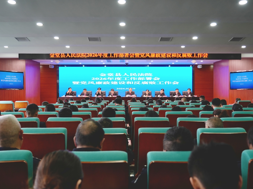 为全面贯彻落实上级党委和上级法院重要会议精神,深入分析当前形势任务,安排部署2026年重点工作,近日,金堂县人民法院召开2026年度工作部署会暨党风廉政建设和反腐败工作会议。通报了2025年全院党风廉政建设和反腐败工作情况,并对2026年全院各项重点工作进行安排部署。