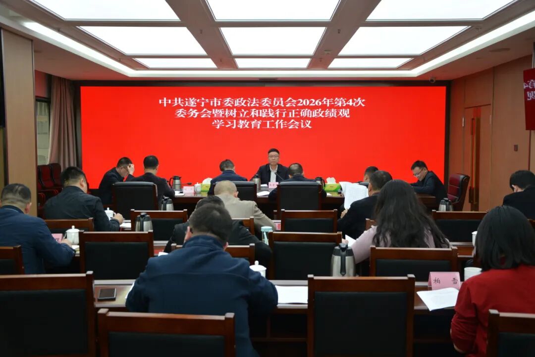 会议指出,在全党开展树立和践行正确政绩观学习教育,是党中央在“十五五”开局之年做出的重要战略部署,也是推动遂宁政法工作高质量发展的现实需要,更是锻造忠诚干净担当政法铁军的紧迫任务。遂宁市委政法委作为政治机关、领导机关要从全局高度理解这次学习教育的深远意义。开展学习教育是筑牢政治忠诚、把准机关属性的必然要求,引导机关干部将理论学习与“刀把子”属性结合起来,确保委机关始终沿着正确方向前进;是服务发展大局、当好参谋助手的现实需要,引导政法干部跳出思维定势,以高水平安全护航高质量发展;是改进机关作风、提升履职能力的关键举措,促进机关干部提升统筹协调、督查督办、服务决策能力,形成讲实干、重实绩、求实效的机关氛围。