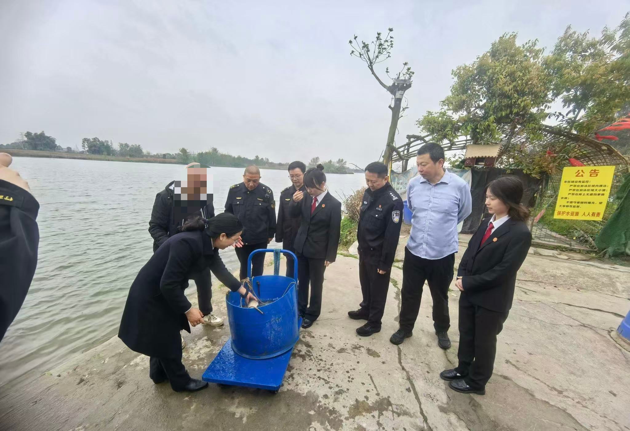 近日,成都市新津区法院联合区检察院、区公安分局、区农业农村局共同开展水生生物增殖放流行动,以实际行动践行生态保护责任,推动受损水域生态环境修复。
