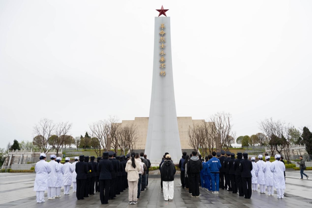 签约仪式后,全体人员移步至烈士纪念碑前,肃立默哀,敬献鲜花,表达对革命先烈的缅怀之情。保护中心为大学生红色讲解员开展了首次实地培训,通过回顾革命历史、了解英雄事迹、感悟英烈精神,为后续高质量志愿讲解筑牢坚实基础。学生代表作表态发言,表示将倍加珍惜此次实践机会,认真钻研英烈事迹、努力讲好红色故事,立志做革命英雄事迹的坚定传承者与自觉传播者。
