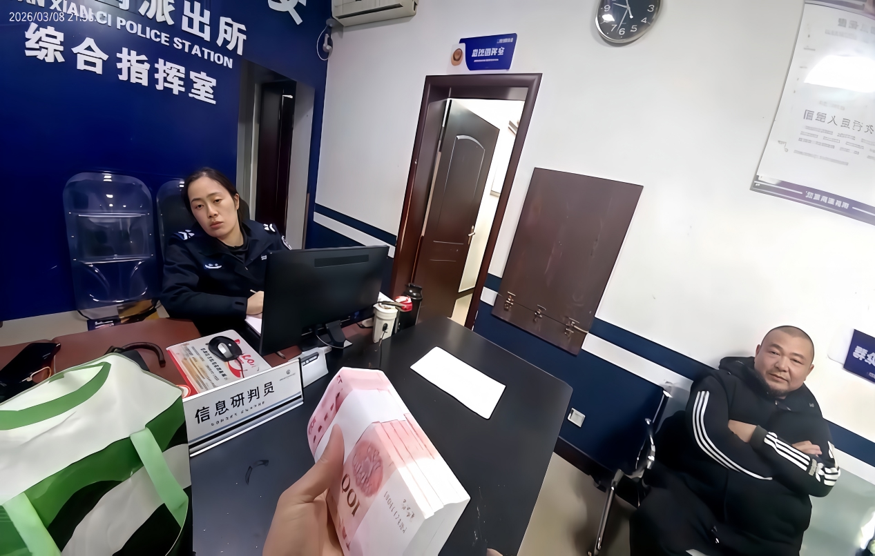 另一边,肖先生回到家后倒头就睡,完全没意识到自己弄丢了钱。直到第二天清晨,宿醉醒来的他猛地想起那笔货款,惊出一身冷汗。就在他焦急万分时,三贤祠派出所的电话打了进来,告知他丢失的现金已被好心人送到派出所。