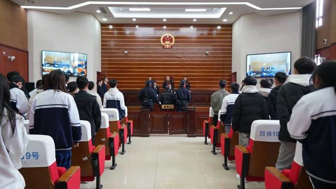 “现在开庭!”随着一声庄严的法槌声,一场特殊的“开学第一课”在该院大法庭拉开帷幕。3月18日,德阳弘正科技职业学校的100余名学生在法治副校长廖燕萍的带领下,走进法庭,旁听一起聚众斗殴致人重伤涉嫌故意伤害罪案件的庭审。从法庭调查到举证质证,学生们屏息凝神,认真观摩庭审的每一个环节,近距离感受司法的庄严与神圣。