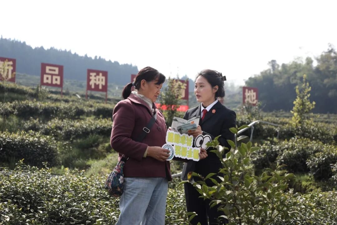 “法官,要是老板收了茶叶不给钱咋办?”“我帮邻居采茶摔伤了,这个责任咋算?”干警穿梭于翠绿的茶树行间,与正在忙碌的茶农、前来观光体验的游客进行“面对面、一对一”的交流。他们用通俗易懂的语言,围绕茶农们普遍关心的茶叶购销、劳务纠纷、土地流转、农资产品质量安全等法律问题,提供精准的咨询和解答。同时,也向游客们普及旅游消费、食品安全等方面的法律知识。这种“零距离”“接地气”的普法方式,切实解答了群众心中的法律疑惑,将专业的法条转化为守护茶农合法权益、促进乡村产业健康发展的实用指南。