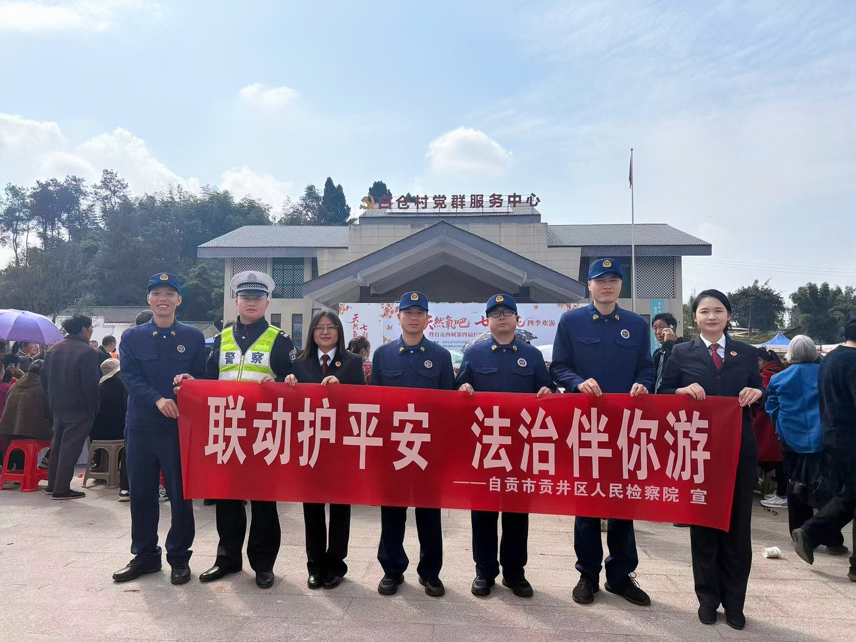 自贡市贡井区检察院联合区公安、消防等多部门深入景区,以“法治护航文旅”为主题开展法治宣传,今年还新增多元宣传内容,为游客、村民送上一份更全面、更贴心的“法治大礼包”,让法治之花与“七彩莲花”交相辉映。