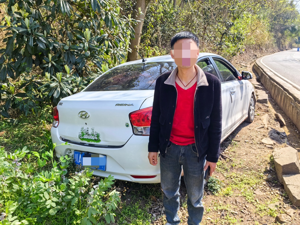 近日,成都交管九分局民警在青白江区清泉镇桂红路开展交通违法整治行动。一辆白色轿车行驶至检查点附近时,突然向后倒车,因操作不当滑至路沿下方,车辆无法行驶。执勤民警立即上前,将该车驾驶员控制。