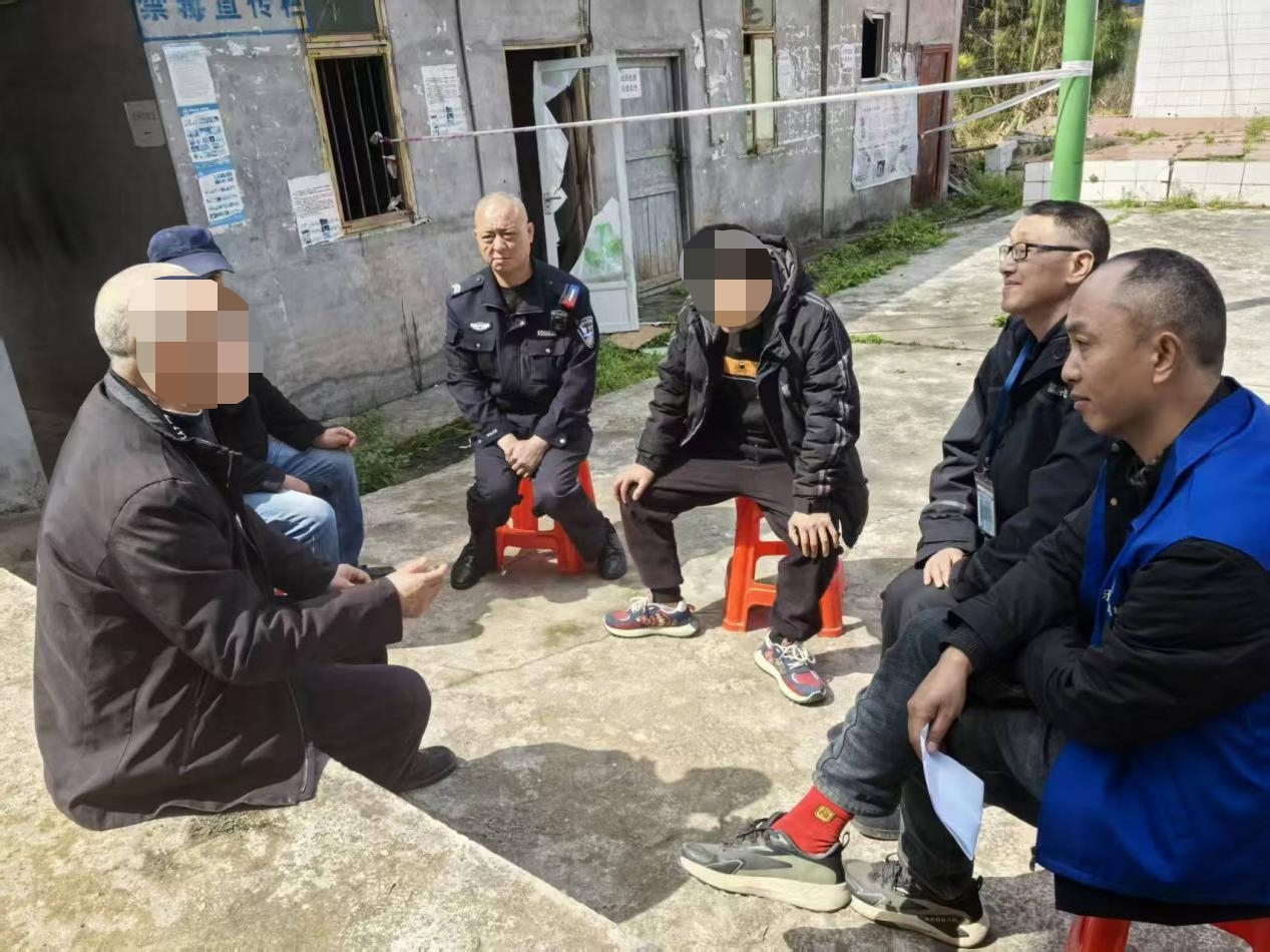 该案经办案团队研判,认为存在重大风险,故立即启动应急预案:一方面,承办法官将相关风险上报分管领导,并通报属地综治中心和派出所提前布防。另一方面,为尽快化解矛盾,避免衍生“民转刑”案件风险,承办法庭启动“法庭+村委+公安+邻居”联合调解机制。调解中,法官组织父子面对面倾诉,让积压多年的恩怨得以释放。法官抓住“情、理、法”关键点,一方面严厉批评原告的极端想法,指出威胁伤害他人于法不容;另一方面劝导父亲理解儿子当下的困境,说明抚恤金分割于法有据,且其有退休金保障基本生活。经数小时耐心调解,父亲最终同意筹措5000元并现场交付。原告也当场承诺会尽赡养义务,并撤回起诉。