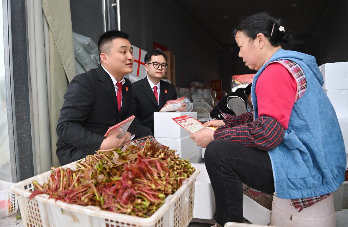 为守护这份“春天的第一鲜”,大竹县法院石河法庭依托“香椿法庭”建设,充分发挥“驻镇联村 法润民心”党建品牌特色,派出干警深入田间地头、市场企业,提供面对面法律咨询服务,以“小法庭”服务“大民生”。