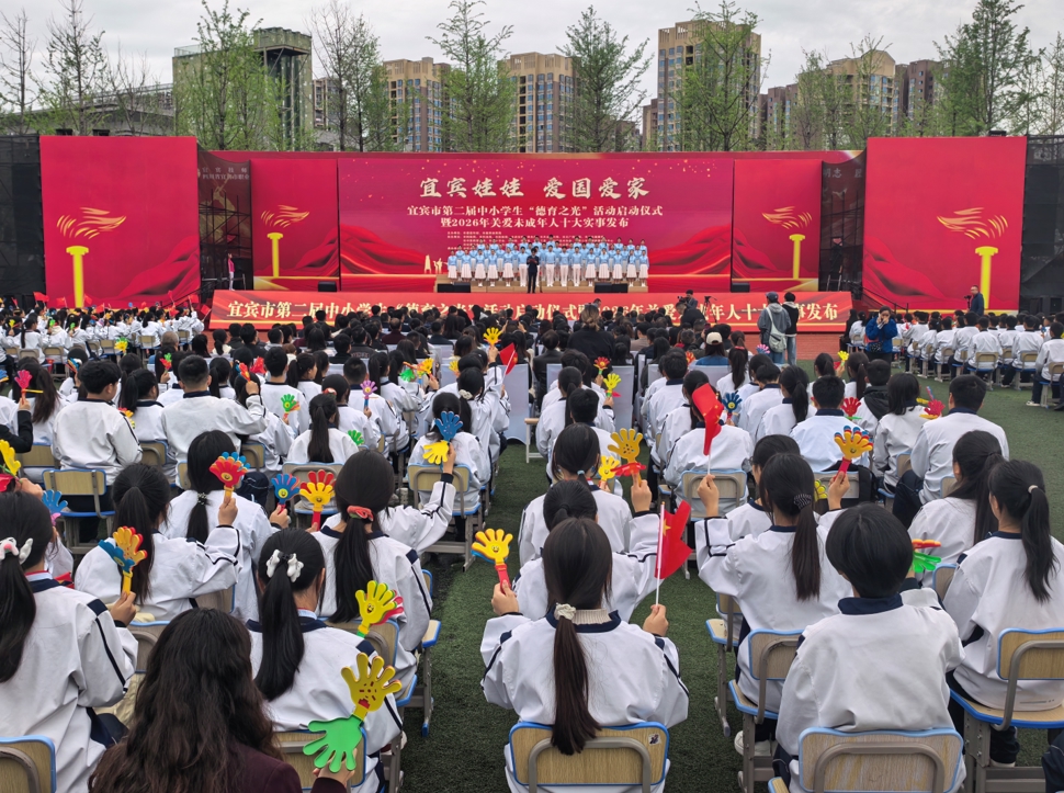 3月31日,以“宜宾娃娃·爱国爱家”为主题的宜宾市第二届中小学生“德育之光”活动正式启动,并同步发布2026年宜宾市关爱未成年人十大实事。